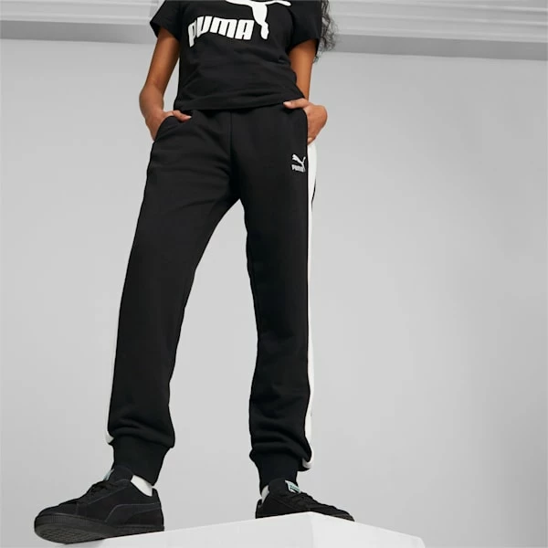 PUMA’s bringing the Iconic T7 out of the archives- cooler than ever and ready to change the game- again. A slim cut pairs with dual side pockets, an adjustable waistband and, of course, the signature T7 stripes at the sides. A classic for all-time.<h3> FEATURES & BENEFITS </h3><ul><li>BCI: By buying cotton products from PUMA, you’re supporting more sustainable cotton farming through the Better Cotton Initiative.</li><li>BETTER MATERIALS: Made with 32% recycled polyester to reduce environmental impact</li></ul><h3> DETAILS </h3><ul><li>Regular fit</li><li>Full length</li><li>Elastic waistband with external adjustable drawcords</li><li>Dual side slip-in pockets</li><li>Rib cuffs</li><li>Contrast T7 stripes at sides</li><li>PUMA Archive No.1 Logo print at left thigh</li><li>68% Cotton 32% Recycled Polyester</li></ul>