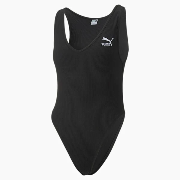 <h3> PRODUCT STORY </h3><p>Embrace those ’80s vibes with a classic from the decade of leg-warmers and big hair: the bodysuit is a versatile little invention to help you achieve the perfect fitted look under jeans or skirts. This Classics edition is made with ribbed fabric for texture and a super-soft feel, and is finished with sophisticated logo embroidery.</p><h3> FEATURES & BENEFITS </h3><ul><li>Cotton: Cotton in PUMA products comes from farms with a focus on sustainable farming such as water efficiency and soil health protection. Learn more: https://about.puma.com/forever-better</li><li>Recycled Content: Made with at least 20% recycled material as a step toward a better future</li></ul><h3> DETAILS </h3><ul><li>Slim fit</li><li>V-neck</li><li>Snap-button closure at the crotch</li><li>Embroidered PUMA Archive No. 1 Logo on the left chest</li></ul>
