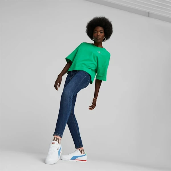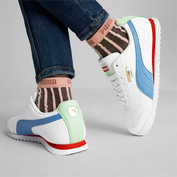 From the 1968 PUMA archives, the Roma was a lightweight training shoe equipped with comfort-enhancing features such as a thick padded tongue and orthopedic arch supports. We’ve revived this classic style to create the modern Roma. The Roma Basic + features a full leather upper and fresh spring colorways.<h3> FEATURES & BENEFITS </h3><ul><li>CMEVA: PUMA’s compression-moulded EVA midsole for lightweight performance</li></ul><h3> DETAILS </h3><ul><li>Bootie construction</li><li>Premium leather upper</li><li>Rubber outsole for grip</li><li>Lace closure for a snug fit</li><li>PUMA Formstrip at medial and lateral sides</li><li>PUMA Roma callout at lateral side</li><li>Archive No. 1 Label on tongue</li></ul>