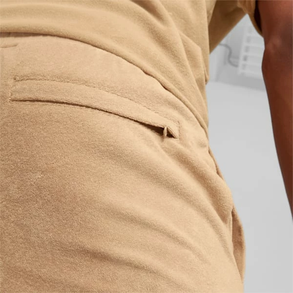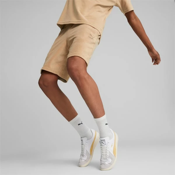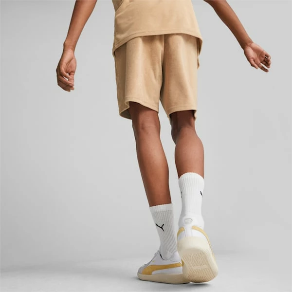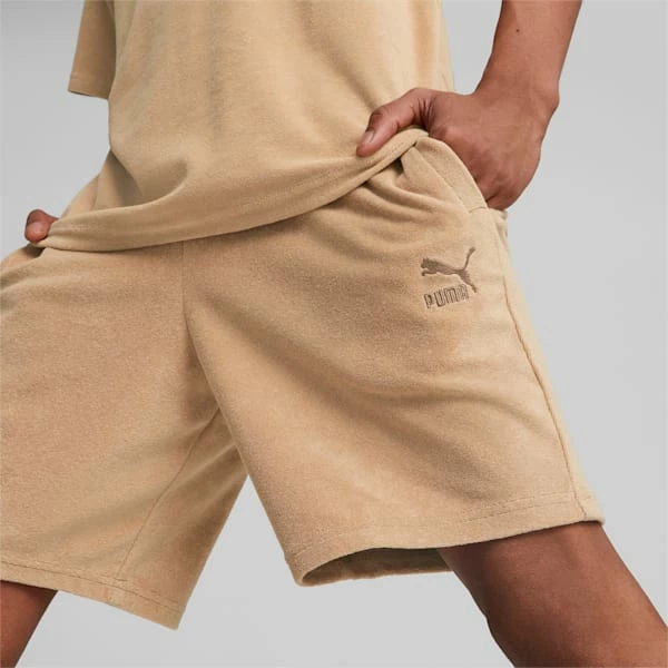 We collected our most beloved designs for our Classics collection, featuring modern accessories and apparel with unparalleled style and unprecedented function. Our Classics Towelling Shorts give any ensemble a sporty spin, featuring luxurious materials for a chic look.<h3> FEATURES & BENEFITS </h3><ul><li>Contains Recycled Material: Made with recycled fibers. One of PUMA’s answers to reduce our environmental impact.</li></ul><h3> DETAILS </h3><ul><li>Regular fit</li><li>8” Inseam length</li><li>Elastic waistband with external drawcord for customised comfort</li><li>Side pockets and pocket on the back</li><li>Towelling body fabric</li><li>PUMA Archive No. 1 Logo embroidery at right leg</li></ul>