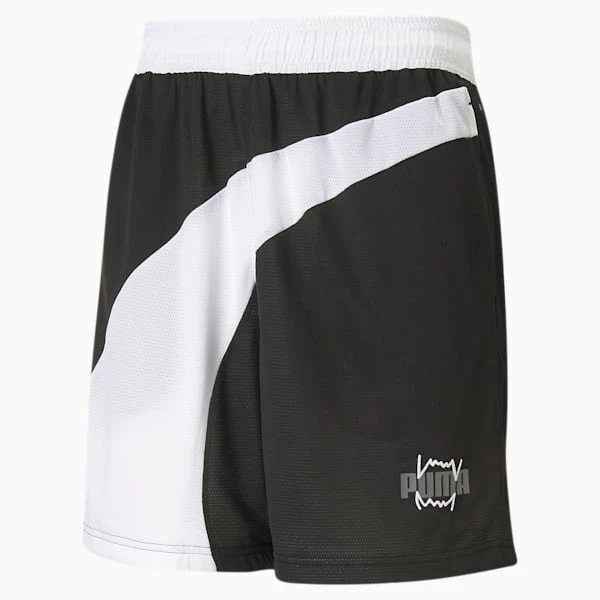 Backed by PUMA’s sports heritage and legendary history on the court, these Flare Basketball Shorts are retro-inspired and game-ready. Made from a lightweight mesh fabric with signature dryCELL moisture-wicking tech, these shorts will keep you cool and dry as you tear up the court. A Formstrip colorblocked panel adds a classic PUMA look.<h3> FEATURES & BENEFITS </h3><ul><li>dryCELL: Technical fabric wicks moisture away from skin to keep you dry and comfortable</li></ul><h3> DETAILS </h3><ul><li>Regular fit</li><li>Above the knee length</li><li>Elastic waistband</li><li>Colorblocked Formstrip panel across front</li><li>PUMA Hoops graphic at lower left leg</li><li>100% Polyester mesh</li></ul>