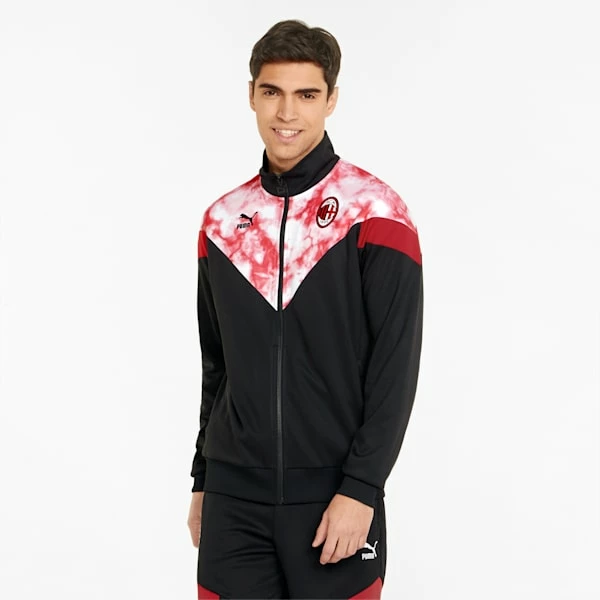 <p>Show everyone where your loyalties lie with the iconic AC Milan track jacket from the official MCS leisurewear collection. The first MCS tracksuit appeared in 1987, and made a name for itself both on the streets and on the dance floor. Now, more than 30 years later, we’re bringing this retro classic back and giving it a soccer twist. Featuring moisture-wicking properties to keep you nice and dry, a handy pocket to store your belongings and stylish club branding, this is one jacket that’s sure to turn heads.</p><h3> FEATURES & BENEFITS </h3><ul><li>Contains Recycled Material: Made with recycled fibers. One of PUMA’s answers to reduce our environmental impact.</li><li>dryCELL: PUMA’s designation for moisture-wicking properties that help keep you dry and comfortable</li><li>miDori®: Made with the bio-based finishing treatment miDori® bioWick.</li></ul><h3> DETAILS </h3><ul><li>Front zip pockets for secure storage of belongings</li><li>Chevron panelling</li><li>Graphic on chest panel and sleeves</li><li>Embroidered PUMA Archive No. 1 Logo at right chest</li><li>Woven official AC Milan club logo with embroidered outline at left sleeve</li></ul>