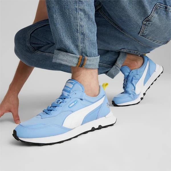 <h3> PRODUCT STORY </h3><p>Speed meets speed in the Rider FV, a runner first launched in 1980, fused with BMW M Motorsport’s DNA. It stands out with a super-comfortable Rider Foam midsole and details signalling your love for Motorsport.</p><h3> FEATURES & BENEFITS </h3><ul><li>Recycled content: The upper of this shoe is made with at least 20% recycled materials as a step toward a better future</li></ul><h3> DETAILS </h3><ul><li>Mesh upper with suede and synthetic overlays</li><li>Rider Foam midsole for maximum comfort</li><li>Rubber outsole</li><li>PUMA Formstrip on the lateral side</li><li>PUMA Wordmark Logo on the lateral side of the upper</li><li>PUMA Cat Logo on the heel</li><li>BMW M Motorsport Logo Medallion the lateral heel</li><li>PUMA RIDER branding on the woven tongue label</li></ul>