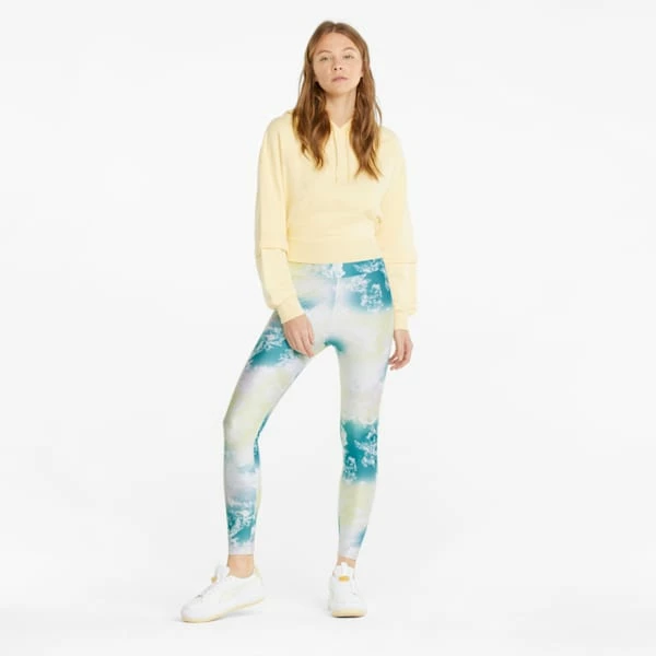 Experience a whole new wavelength in our Crystal Galaxy collection, inspired by modern trends to deliver looks that are chill vibes only. Our Crystal Galaxy High Waisted Leggings effortlessly pair style and performance, featuring an on-trend all-over print and made from sustainable bluesign certified textiles engineered to move with you.<h3> FEATURES & BENEFITS </h3><ul><li>Contains Recycled Material: Made with recycled fibers. One of PUMA’s answers to reduce our environmental impact.</li><li>miDori®: Made with the bio-based finishing treatment miDori® bioWick.</li><li>bluesign®: As a bluesign® SYSTEM PARTNER, we are a responsibly acting party of the textile value chain, committed to a clean and safe Input Stream Management approach.</li></ul><h3> DETAILS </h3><ul><li>Tight fit</li><li>High waist</li><li>Elasticated waistband</li><li>AOP warning: Product with all-over-printed graphics might not exactly match the images</li><li>PUMA Archive No.1 Logo at left leg</li></ul>