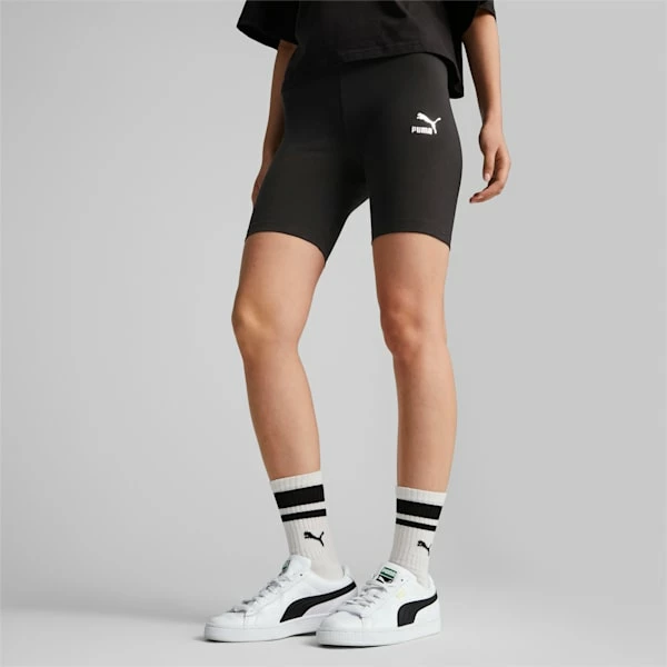 <h3> PRODUCT STORY </h3><p>Designed for those who dare. Tight-fitting cycle shorts are a new seasonal staple – whether under skirts, shirts, or baggy tees, we can’t get enough. The 3D metallic logo adds some subtle shine to this block-colour pair.</p><h3> FEATURES & BENEFITS </h3><ul><li>COTTON: Cotton in PUMA products comes from farms with a focus on sustainable farming such as water efficiency and soil health protection. Learn more: https://about.puma.com/forever-better</li></ul><h3> DETAILS </h3><ul><li>Tight fit</li><li>High-rise</li><li>7″ inseam</li><li>PUMA Archive No. 1 Logo silver 3D weld transfer on the left leg</li></ul>