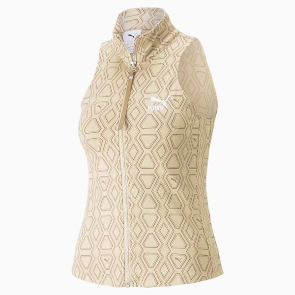 <h3> PRODUCT STORY </h3><p>The Luxe Sport line elevates athleticwear with runway-inspired details. This knitted top is a prime example, with a geometric all-over print and sportswear cues throughout.</p><h3> FEATURES & BENEFITS </h3><ul><li>DRY: dryCELL: Performance technology designed to wick moisture from the body and keep you free of sweat during exercise</li><li>FOREVER BETTER: Made with at least 20% recycled material as a step toward a better future</li></ul><h3> DETAILS </h3><ul><li>Slim fit</li><li>Sleeveless design</li><li>245 gsm fabric for a heavy-weight feel</li><li>All-over graphic</li><li>Full-zip closure</li><li>Embroidered PUMA Archive No. 1 Logo on the chest</li></ul>