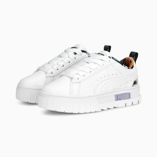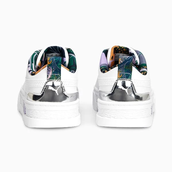 <h3> PRODUCT STORY </h3><p>For the hype girls, the street enthusiasts, the trend setters – the Mayze. This stand-out model has a stacked sole for a look that makes a statement, however you choose to style it. This pair’s tropical hits are inspired by the dreamiest holiday destinations.</p><h3> DETAILS </h3><ul><li>Synthetic upper</li><li>Metallic overlays</li><li>EVA midsole</li><li>Rubber outsole</li><li>PUMA Little Kids: Recommended for young kids between 4 and 8 years</li></ul>