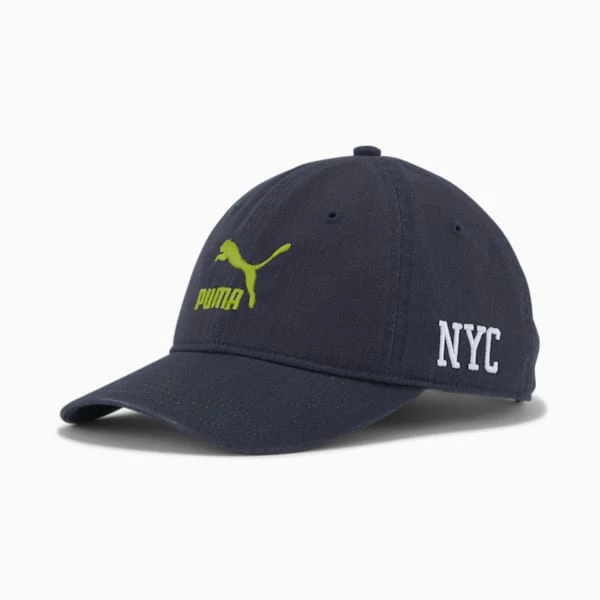 Let ’em know where you’re from. The PUMA NYC collection celebrates our first Flagship store opening, and all things NY. Vibrant colors and unique NYC detailing make these pieces truly one-of-a-kind. The PUMA NYC Mecca Dad Cap is sleek and stylish, combining a classic dad cap silhouette with some NYC flair.<h3> DETAILS </h3><ul><li>Deconstructed six-panel baseball cap with curved brim and adjustable fit</li><li>Embroidered eyelets</li><li>Fabric closure with antique silver metal adjuster buckle</li><li>Woven NYC detailing at side</li><li>PUMA No.1 Logo at front</li></ul>