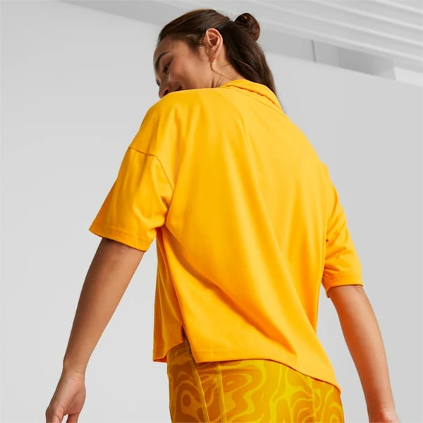 <h3> PRODUCT STORY </h3><p>The Open Road High Neck Tee features a high, doubled over neckline and a relaxed fit, perfect for any casual outfit. On top of that, it’s built with our moisture-wicking dryCELL technology that keeps you comfortable while on the move.</p><h3> FEATURES & BENEFITS </h3><ul><li>FOREVER BETTER: Made with at least 20% recycled material as a step toward a better future</li><li>DRY: dryCELL: Performance technology designed to wick moisture from the body and keep you free of sweat during exercise</li></ul><h3> DETAILS </h3><ul><li>Relaxed fit</li><li>Doubled over and loose fit high neck</li><li>Forwarded shoulder seam</li><li>Short sleeve</li><li>Rubber print PUMA Cat Logo on center chest</li></ul>