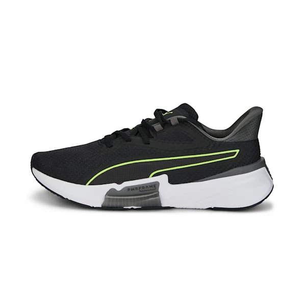 <h3> PRODUCT STORY </h3><p>Start every workout the right way – with the ultimate foundation. PWRFRAME TR is a high-performance training shoe that features our new PWRFRAME technology which is engineered specifically for forefoot support during explosive movements. The 3D support system helps keep you steady through every interval, making it perfect for a wide range of routines. Its maximum functionality helps enhance any and every workout.</p><h3> FEATURES & BENEFITS </h3><ul><li>SUPPORT: Engineered midsole 3D frame system providing enhanced support and stability.</li><li>CUSHIONING: PROFOAM high-rebound EVA that provides cushioning and a responsive ride.</li><li>PUMAGRIP: Durable rubber compound that provides multi-surface traction.</li></ul><h3> DETAILS </h3><ul><li>Low boot construction</li><li>Textile upper</li><li>PWRFRAME midsole</li><li>PUMAGRIP high-traction rubber outsole</li><li>Textile tongue</li><li>Lace closure</li><li>PUMA Cat Logo at tongue</li><li>PUMA Formstrip at lateral and medial sides</li></ul>