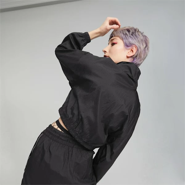 <h3> PRODUCT STORY </h3><p>A stripped down jacket that looks as great with jeans and a tee as it does with athleisurewear, the SQ Woven Track Jacket features a practical two-way zipper that makes it easy to take on and off, plus a practical cord stopper on the side seam of the waistband to keep everything in place. And thanks to the relaxed fit, it’s also right on trend.</p><h3> FEATURES & BENEFITS </h3><ul><li>FOREVER BETTER: Made with at least 20% recycled material as a step toward a better future</li></ul><h3> DETAILS </h3><ul><li>Relaxed fit</li><li>Elasticated cuffs and waistband</li><li>Two-way full-zip closure</li><li>Rubber glitter PUMA Archive No. 1 Logo on the chest</li></ul>