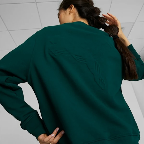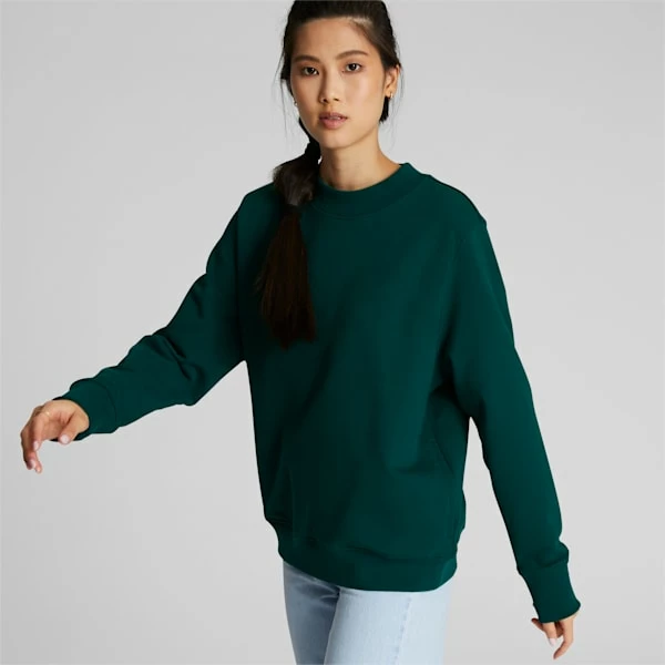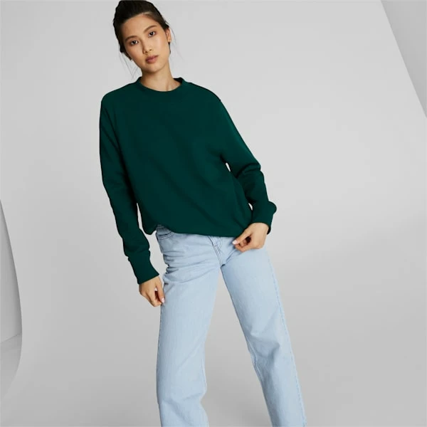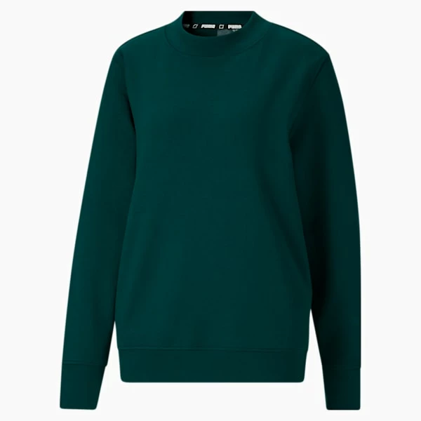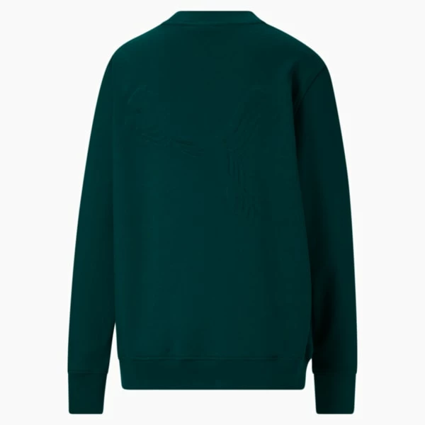 <h3>PRODUCT STORY</h3>A ribbed collar, cuff, and hem lend a refined look to the emerald color Stewie Crew Neck, while an oversize tonal PUMA cat on the back has a mid-leap, 3D effect. This elevated two-tone staple is designed to mix and match seamlessly with the other pieces in Breanna Stewart’s capsule collection.<h3>FEATURES & BENEFITS</h3><ul><li>FOREVER BETTER: Made with at least 20% recycled material as a step toward a better future</li><li>COTTON: Cotton in PUMA products comes from farms with a focus on sustainable farming such as water efficiency and soil health protection. Learn more: https://about.puma.com/forever-better</li></ul><h3>DETAILS</h3><ul><li>Regular fit</li><li>French terry jersey</li><li>Crewneck</li><li>PUMA branding details</li></ul>
