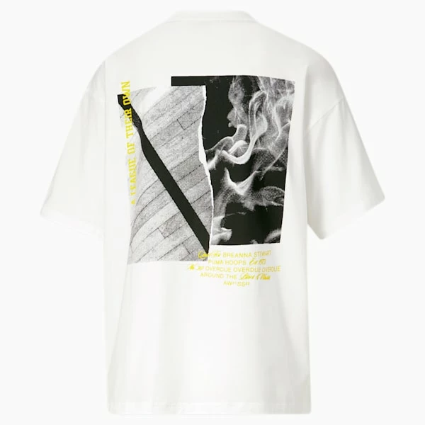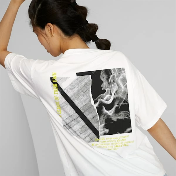 <h3>PRODUCT STORY</h3>To illustrate Breanna Stewart’s “Quiet Fire” versatility, the back of the Stewie Graphic Tee features an artistic black and white photo of a weathered hardwood court overlapping a smoky flame image. The latter resembles the basketball star mid-play, while the clean front—with its minimalist PUMA cat logo—offers a streamlined look.<h3>FEATURES & BENEFITS</h3><ul><li>COTTON: Cotton in PUMA products comes from farms with a focus on sustainable farming such as water efficiency and soil health protection. Learn more: https://about.puma.com/forever-better</li></ul><h3>DETAILS</h3><ul><li>Regular fit</li><li>Crewneck</li><li>PUMA branding details</li></ul>