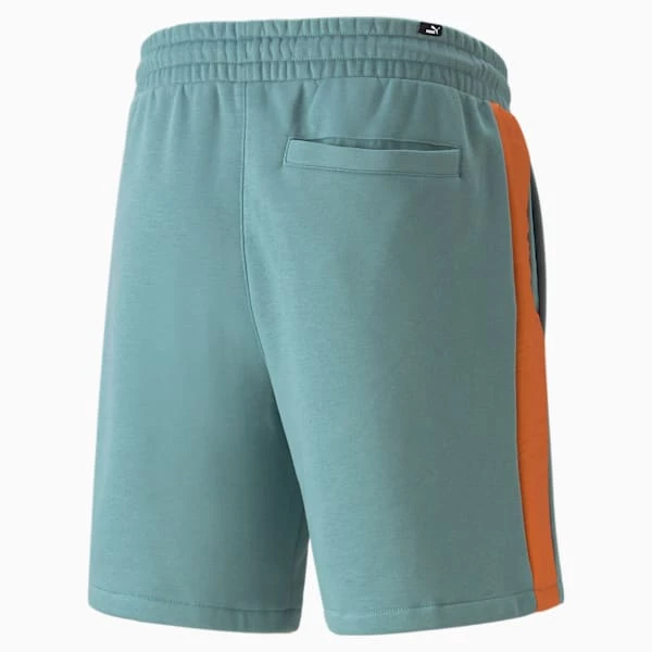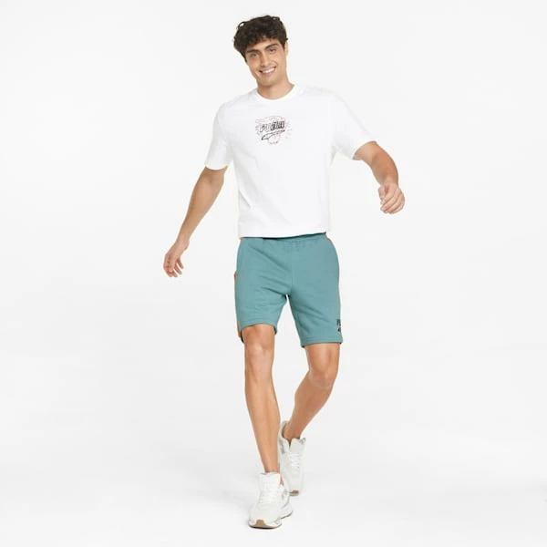 These cool knitted shorts contain recycled fibres and showcase iconic T7 panel inserts along the side. The handy side pockets and zip pocket at the back deliver secure storage on the go, while the elasticated waistband features external drawcords so you can adjust the fit to suit you. The 8” inseam length creates a medium length fit, and the striking puff print finishes the piece with an eye-catching impact.<h3> FEATURES & BENEFITS </h3><ul><li>Contains Recycled Material: Made with recycled fibers. One of PUMA’s answers to reduce our environmental impact.</li></ul><h3> DETAILS </h3><ul><li>Regular fit</li><li>8″ Inseam length</li><li>Side pockets and zip back pocket</li><li>Elastic waistband with external drawcords</li><li>T7 panel inserts</li><li>Rubber and suede puff print PUMA graphic at thigh</li></ul>