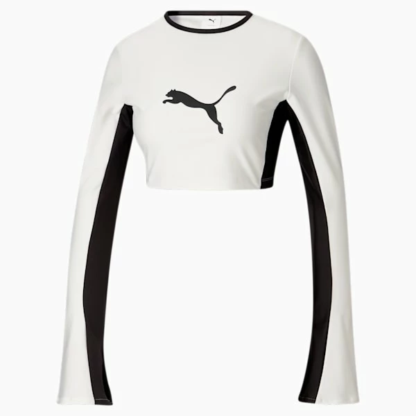 <h3> PRODUCT STORY </h3><p>Bring bold style to your favorite look with this long sleeve shirt, featuring a crop-top design. With its PUMA Cat logo and bell-shape sleeves, this shirt is sure to catch some eyes.</p><h3> DETAILS </h3><ul><li>Long sleeves</li><li>Crew neck</li><li>PUMA branding details</li></ul>