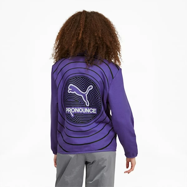 Say it loud and proud in this eye-catching half-zip sweatshirt from PUMA and PRONOUNCE, a fashion label that pushes boundaries of gender and culture to create a style that’s all its own. These two groundbreaking brands have teamed up to create a comfy and practical top with a print on the reverse that’s out of this world. The ultimate style statement.<h3>DETAILS</h3><ul><li>Relaxed fit</li><li>Ribbed V-neck</li><li>Cropped length</li><li>Raglan sleeve construction</li><li>Bungee cord, stopper and bean on one side for adjustable fit</li><li>Ribbed cuffs and waistband</li><li>Graphic back neck tape</li><li>Graphic regular puff</li><li>Sign-off 3D weld transfer badge at chest</li></ul>