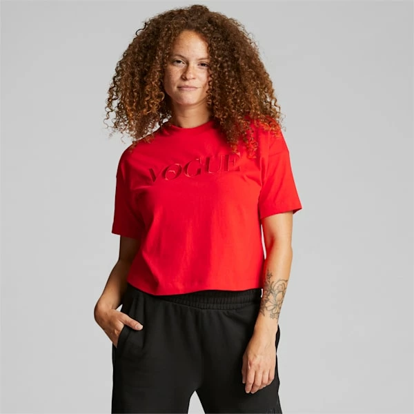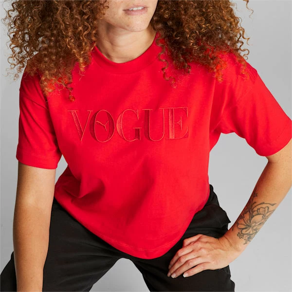 <h3> PRODUCT STORY </h3><p>Since 1892, Vogue has stood as the timeless epitome of fashion – depicting the trends of the past and present, and shaping those of the future. Today, PUMA x VOGUE combines the worlds of sport and fashion into a one-of-a-kind collection. These daring pieces feature allover prints and bold branding for today’s sport-fashion mavens.</p><h3> FEATURES & BENEFITS </h3><ul><li>By buying cotton products from PUMA, you’re supporting more sustainable cotton farming. Learn more at PUMA.COM/FOREVERBETTER</li></ul><h3> DETAILS </h3><ul><li>Rib crew neck</li><li>Open hem with double needle stitching</li><li>VOGUE embroidery on the chest</li><li>PUMA x VOGUE co-branded woven label at the hem</li></ul>
