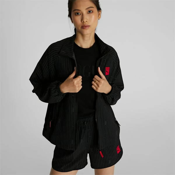 <h3> PRODUCT STORY </h3><p>Since 1892, Vogue has stood as the timeless epitome of fashion – depicting the trends of the past and present, and shaping those of the future. Today, PUMA x VOGUE combines the worlds of sport and fashion into a one-of-a-kind collection. These daring pieces feature allover prints and bold branding for today’s sport-fashion mavens.</p><h3> FEATURES & BENEFITS </h3><ul><li>FOREVER BETTER: Made with recycled fibers. One of PUMA’s answers to reduce our environmental impact.</li><li>windCELL: PUMA’s designation for highly functional materials that provide a durable yet breathable protection against wind chill while helping maintain body temperature during exercise</li></ul><h3> DETAILS </h3><ul><li>Elastic waistband with drawcord</li><li>PUMA x VOGUE co-branded all-over print</li><li>PUMA x VOGUE co-branded heat transfer badge on the left leg</li></ul>