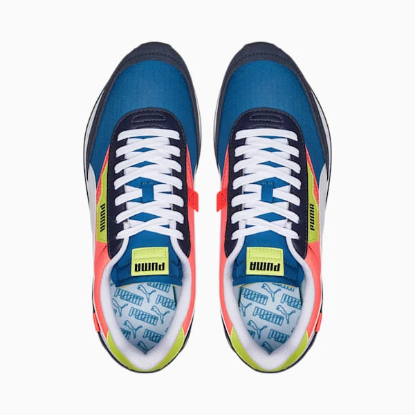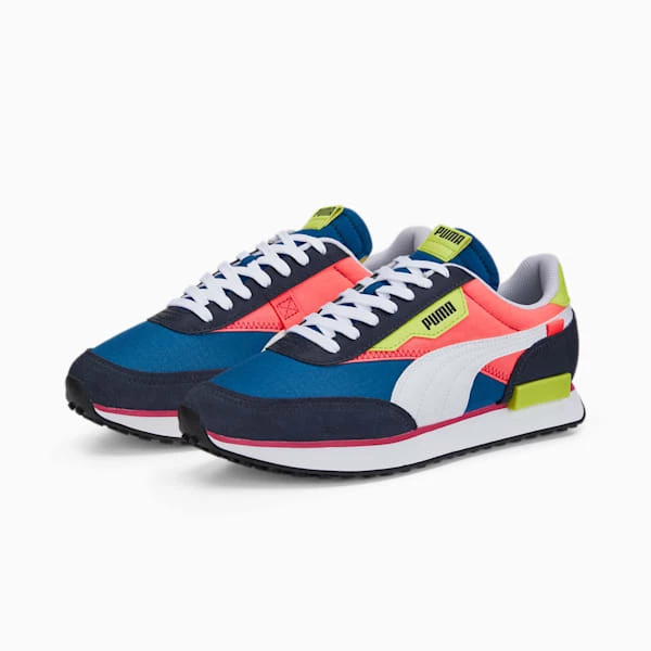 Back in 1980, the Fast Rider was one of PUMA’s most comfortable yet simplistic running shoes, with a super-light design and shock-absorbing outsole. Today, we’ve revamped the Fast Rider as the Future Rider – reborn for casual-cool street style with bold material play and colorblocking, a slimmer outsole, and ultra-comfortable Rider Foam.<h3> DETAILS </h3><ul><li>Textile upper with suede and leather overlays</li><li>Full lace closure</li><li>IMEVA midsole provides lightweight cushioning</li><li>Rubber outsole provides traction and grip</li><li>PUMA Formstrip overlay at sides</li><li>Woven PUMA label at tongue</li></ul>