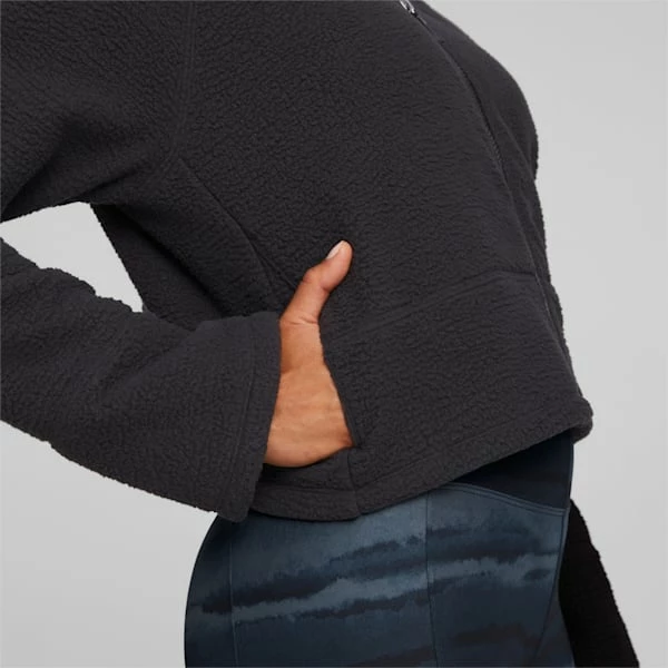 <h3> PRODUCT STORY </h3><p>The Studio Sherpa Jacket is the perfect layering piece to take you to and from your practice. Its comfy, cozy design isn’t short on style, while at least 70% recycled materials and side pockets add a practical spin.</p><h3> FEATURES & BENEFITS </h3><ul><li>FOREVER BETTER: Made with at least 70% recycled polyester as a step toward a better future.</li><li>MOVEMENT: Open entry hand pockets offer a secure storage solution on the move.</li></ul><h3> DETAILS </h3><ul><li>Full zip closure</li><li>Raglan sleeves</li><li>PUMA Cat Logo on left chest</li></ul>