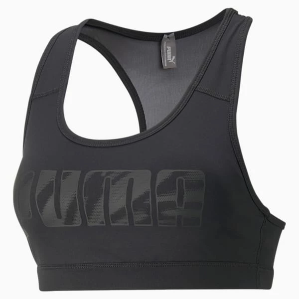 Dress yourself in fierce training style from head to toe with our 4Keeps Graphic Bra. This high-performance mid impact bra features stabilizing shoulder straps with a racerback construction for unrestricted range of motion and an elastic bottom band for a secure fit that moves with you. Mesh panels at the back and a fresh graphic print keep you looking and feeling your best.<h3> FEATURES & BENEFITS </h3><ul><li>SUPPORT: Mid impact design for support through training</li><li>FIT: Stabilizing shoulder straps with racerback construction for wide range of motion</li><li>COMFORT: Elastic bottom band for secure fit and support</li><li>BETTER MATERIALS: Made with recycled polyester to reduce environmental impact</li></ul><h3> DETAILS </h3><ul><li>Tight fit</li><li>Mid impact support</li><li>Racerback construction</li><li>Removable pads</li><li>Elastic bottom band for support</li><li>Mesh panel at back for breathability</li><li>All-over graphic print</li><li>PUMA Cat Logo print at front</li><li>89% Recycled Polyester 11% Elastane</li></ul>