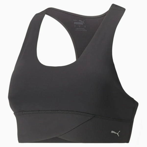 Make an entrance in the Forever Luxe Mid Impact Bra. This signature racerback top was carefully crafted with luxurious ellaVATE fabric for a cool look that’s even cooler to the touch. This sweat-wicking, four-way stretch material is complimented by an extended, longline underbust for friction-free moves in the gym and beyond.<h3> FEATURES & BENEFITS </h3><ul><li>SUPPORT: Mid impact design for support through training</li><li>FIT: Performance fit features bonded seams and a racerback design for ease of movement</li><li>COMFORT: Quick-drying, four-way stretch ellaVATE fabric offers a cool, premium feel and sheer proof coverage</li></ul><h3> DETAILS </h3><ul><li>Tight fit</li><li>Mid impact design</li><li>Racerback for ease of movement</li><li>Wide bottom band with petal opening at front</li><li>PUMA Cat Logo outline print at lower left front</li><li>Polyester and elastane</li></ul>